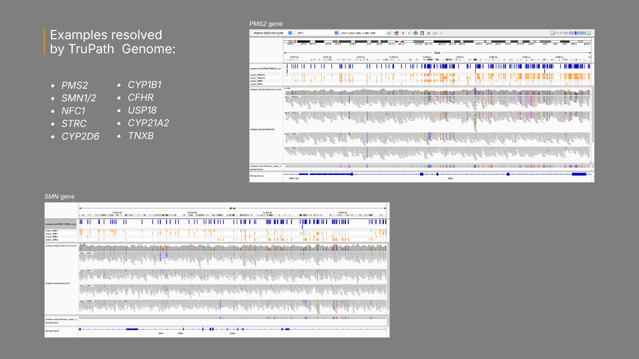 現在のロングリードアプローチと比較して、TruPath Genomeは1回のランあたり最大4倍のゲノムを提供し、エンドツーエンドのターンアラウンドタイムをほぼ半分に短縮します。