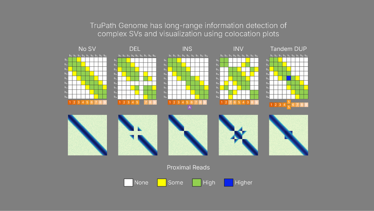 TruPath Genomeは、近接マップリードテクノロジーによりカバレッジを向上させ、高精度のバリアント検出と前例のないシンプルさを実現するとともに、 ヒト 生殖系列 全ゲノムシーケンス (WGS) を可能にします。オンフローセルライブラリー調製により、シーケンス前の標準的なライブラリー調製が不要になります。