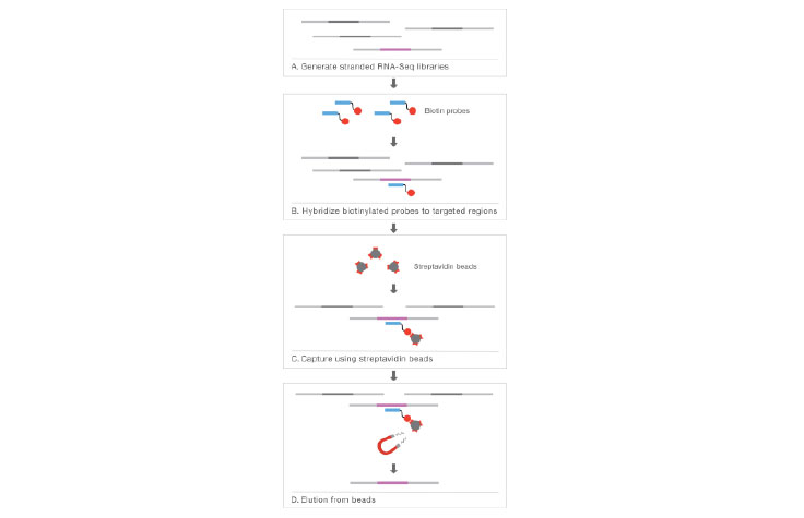 TruSight RNA PanCancer Panelは、対象領域をトータルRNAから分離するためのシンプルで合理化された方法を提供します。