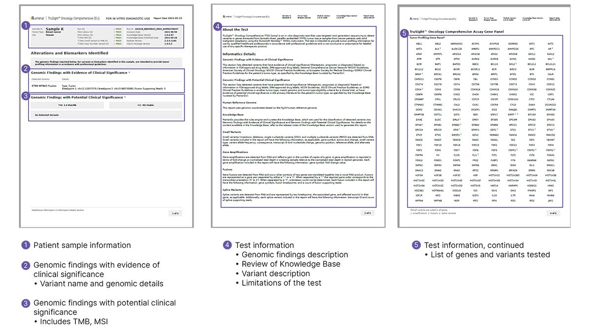 TruSight Oncology Comprehensive (EU) is an in vitro diagnostic test that generates a comprehensive genomic profile of a patient’s tumor, informing therapy decisions according to clinical guidelines.