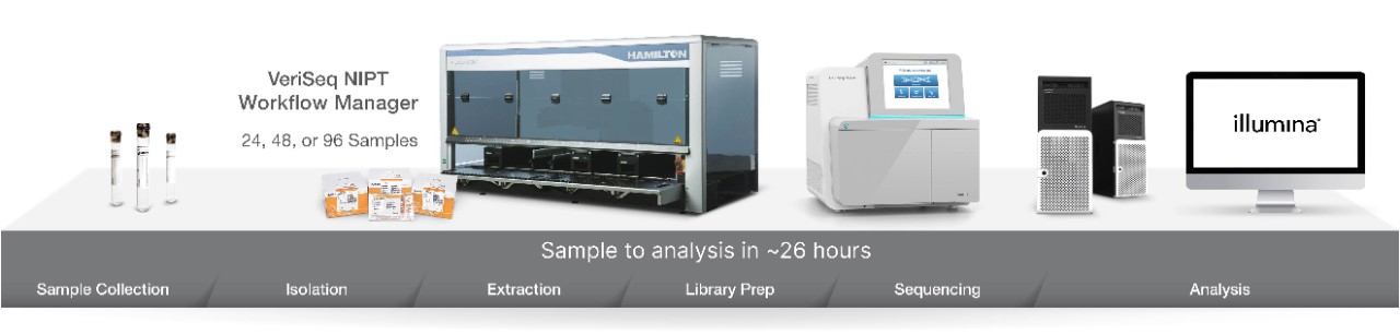 VeriSeq NIPT v2は、ランごとに24、48、または96のサンプルを分析することができるシンプルでスケーラブルなIVDソリューションです。Hamilton RoboticsのVeriSeq NIPT Microlab STARシステムでサンプル調製が自動化されています。