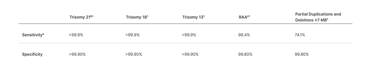 ベーシックスクリーニングでは、21番染色体、18番染色体、13番染色体、X番染色体、Y番染色体のみのトリソミー状態に関する情報を提供します。ゲノムワイドスクリーニングでは、すべての常染色体の7 Mb以上の部分的な欠失と重複、およびすべての染色体の異数性の状態に関する情報を提供します。一部の国では、規制によって、胎児の性別および性染色体異数性(SCA)に関するレポート作成が利用できない場合があります。