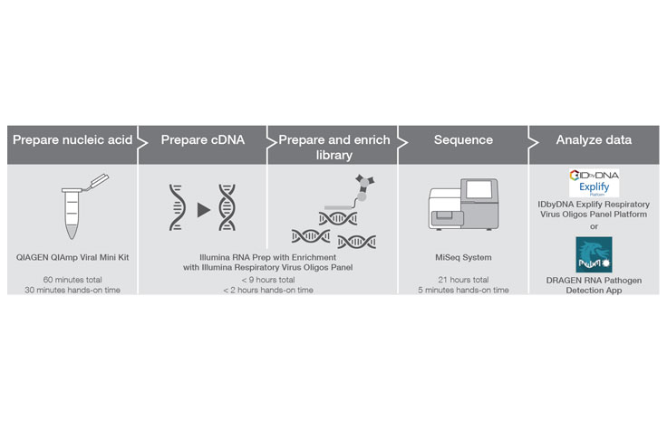 呼吸器系ウイルス検出のための合理化されたNGSワークフローは、サンプル調製、ライブラリー調製、ターゲット濃縮、シーケンス、およびデータ解析を統合します。